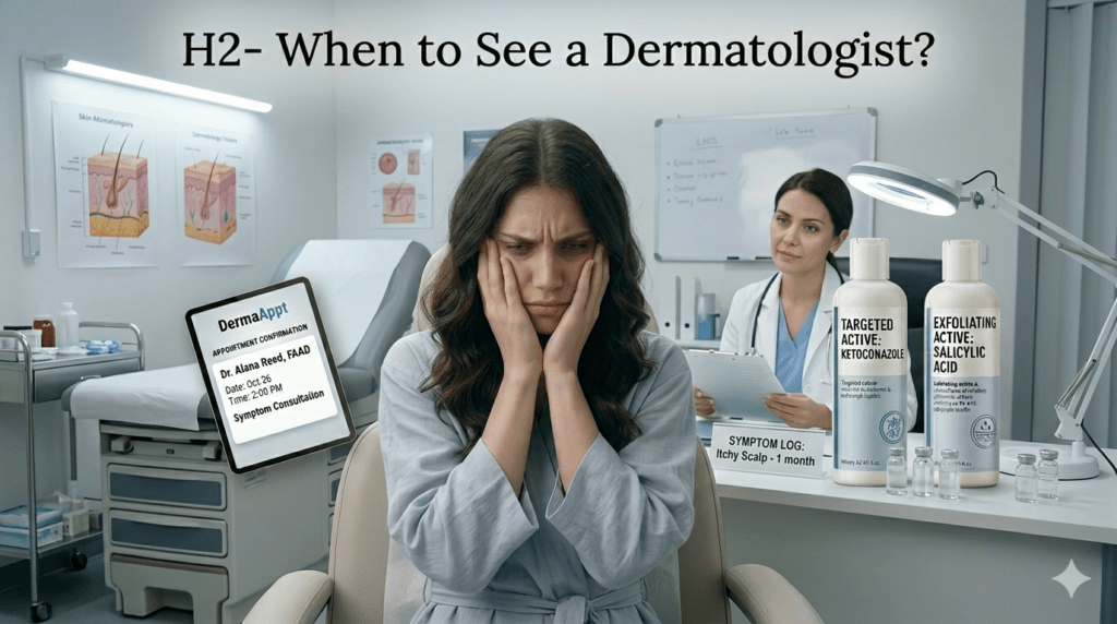 Dermatologists often recommend medicated shampoos containing antifungal or anti-inflammatory ingredients. For persistent dandruff, ketoconazole or selenium sulfide is commonly advised. If redness or hair thinning is present, prescription-strength treatments may be suggested after evaluation.