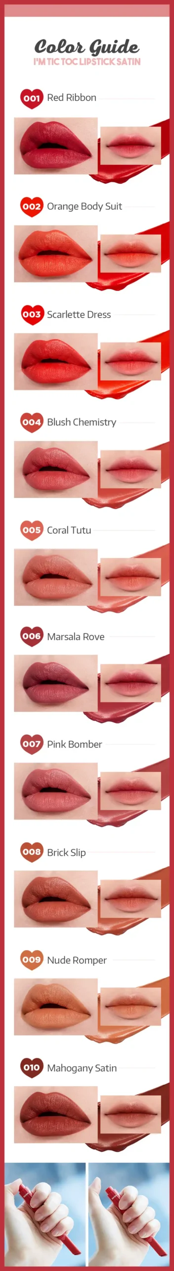 A heart shape lipstick collection comes with 10 colours, ranging from nude beige, cherry red to burgundy.